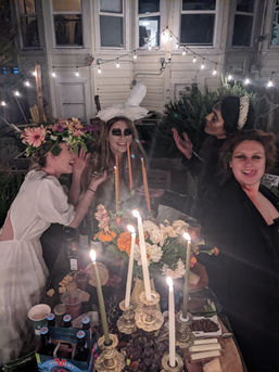 Many of these gatherings are conceptually themed and coincide with culturally or seasonally significant times of the year. Manifestations of Luv is an annual event I have hosted every year since 2017. Taking place in the same month as Valentine's Day, it serves as a reaction to a world that centers romantic love, transactional relations, and the couple form. A more radical version of 'galentines day,' we practice vulnerability, loving-kindness, feminist consciousness-raising, and being in sacred circle.